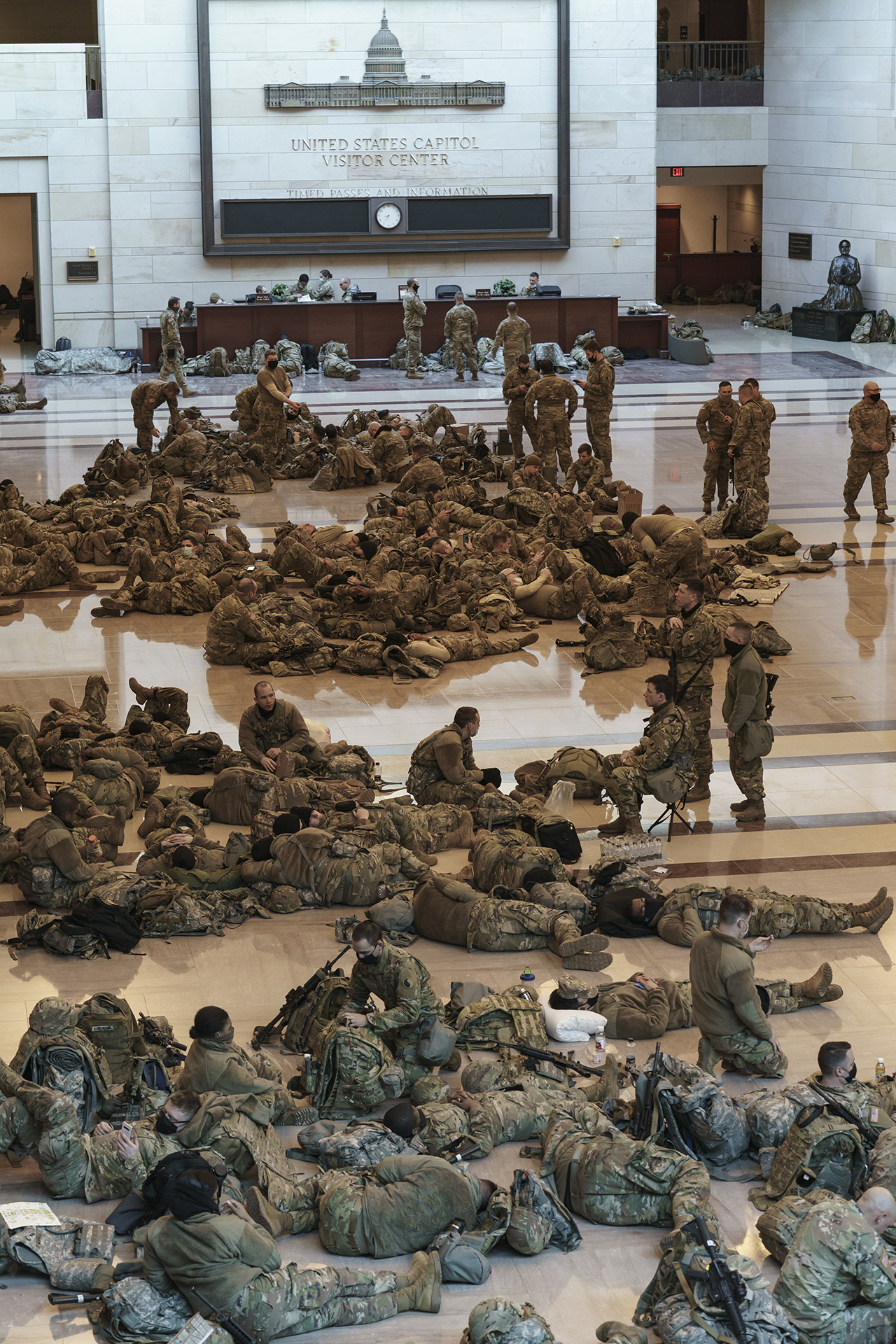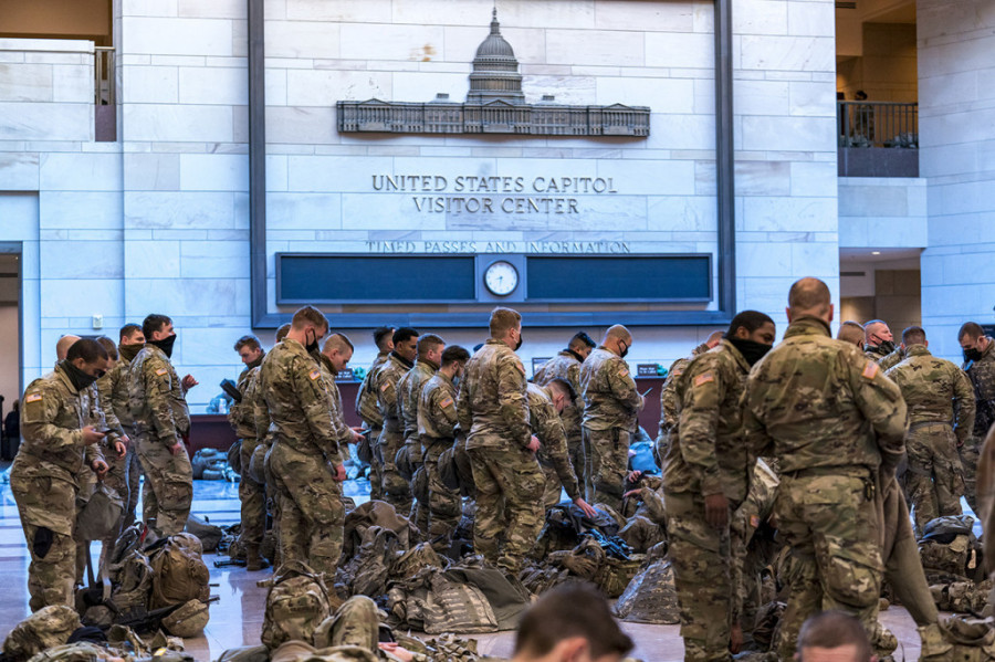Naime, lider demokratske većine, Steni Hojer, kongresmen iz Merilenda, snimljen je kako pri ulasku u Kongres prolazi pored pripadnika Nacionalne garde koji odmaraju ležeći na hodnicima zakonodavnog tela SAD.