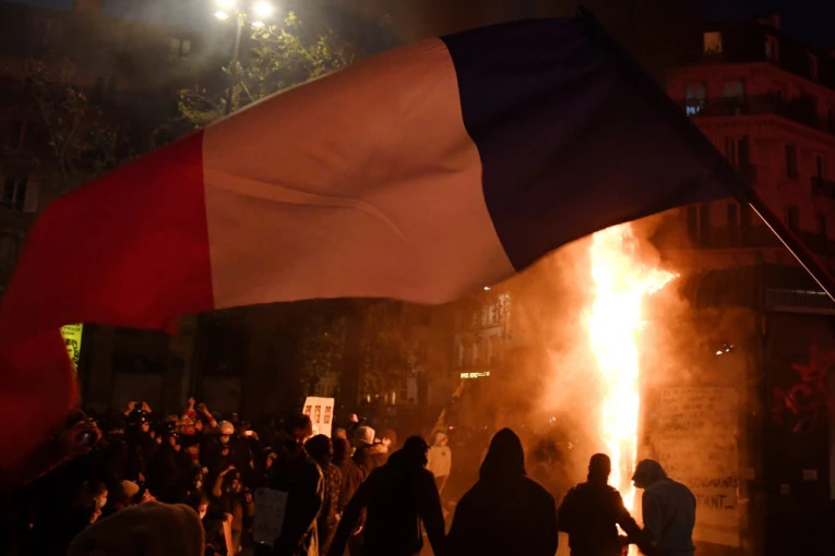 Francuski policajci ispalili su u subotu u Parizu suzavac i šok granate za vreme protesta protiv policijskog nasilja nakon što su ih maskirani demonstranti napali pirotehnikom, kamenjem i podigli barikade. Zapaljena je i fasada Centralne banke.