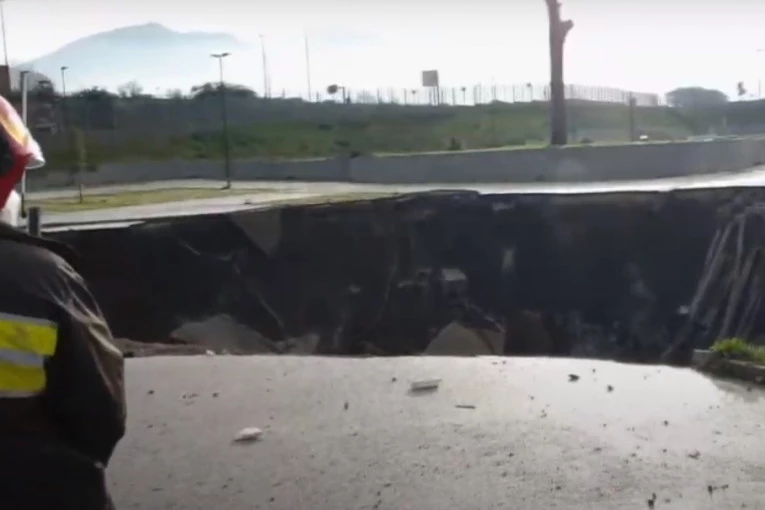 Na parkiralištu u blizini kovid centra u Napulju jutros se uz buku, lomljavu i zvuk eksplozije otvorio veliki krater u zemlji, dubok 20 metara.