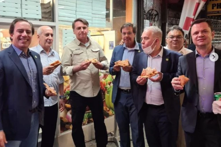 Dva ministra iz njegovog kabineta, koja su deo brazilske delegacije, objavila su fotografiju Bolsonara koji sa pomoćnicima jede picu na njujorškom šetalištu.