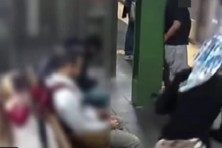 Nadzorna kamera snimila je zastrašujući trenutak kad je žena gurnula jednu osobu na nadolazeći voz u metro stanici "Tajms skver" u Njujorku u ponedeljak ujutro.