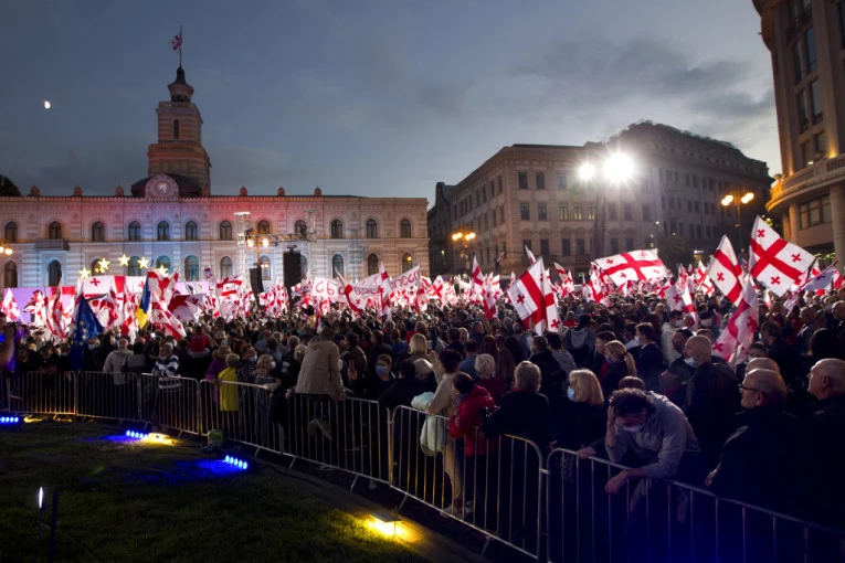Najmanje 50.000 ljudi okupilo se na Trgu slobode u centru Tbilisija uzvikujući Sakašvilijevo ime.