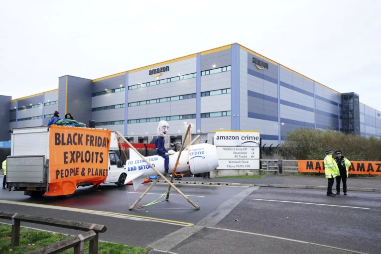 Klimatski aktivisti blokirali su danas skladišta Amazona širom Velike Britanije, sa ciljem da u jednom od najprometnijih dana u godini izvrše pritisak na giganta elektronske trgovine da poboljša uslove rada i okonča poslovne prakse koje štete životnoj sredini.