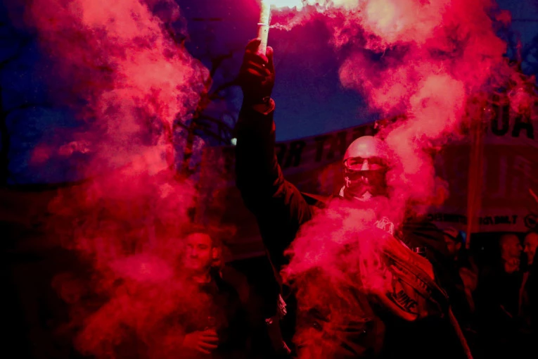 I na tom skupu došlo je do guranja sa policijom i bacanja predmeta na čuvare reda, koji su pokušavali da preusmere učesnike kako ne bi došli u kontakt sa drugim povorkama.