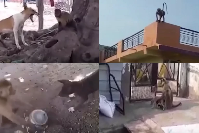 Policija i druge službe morali su da se uključe u akciju kada su društvene mreže preplavili snimci u kojima majmuni krovovima i granama drže pse i oni u kojima psi jure majmune po ulicama, dok žene i deca beže i traže sklonište pred ovim nesvakidašnjim ratom životinja.